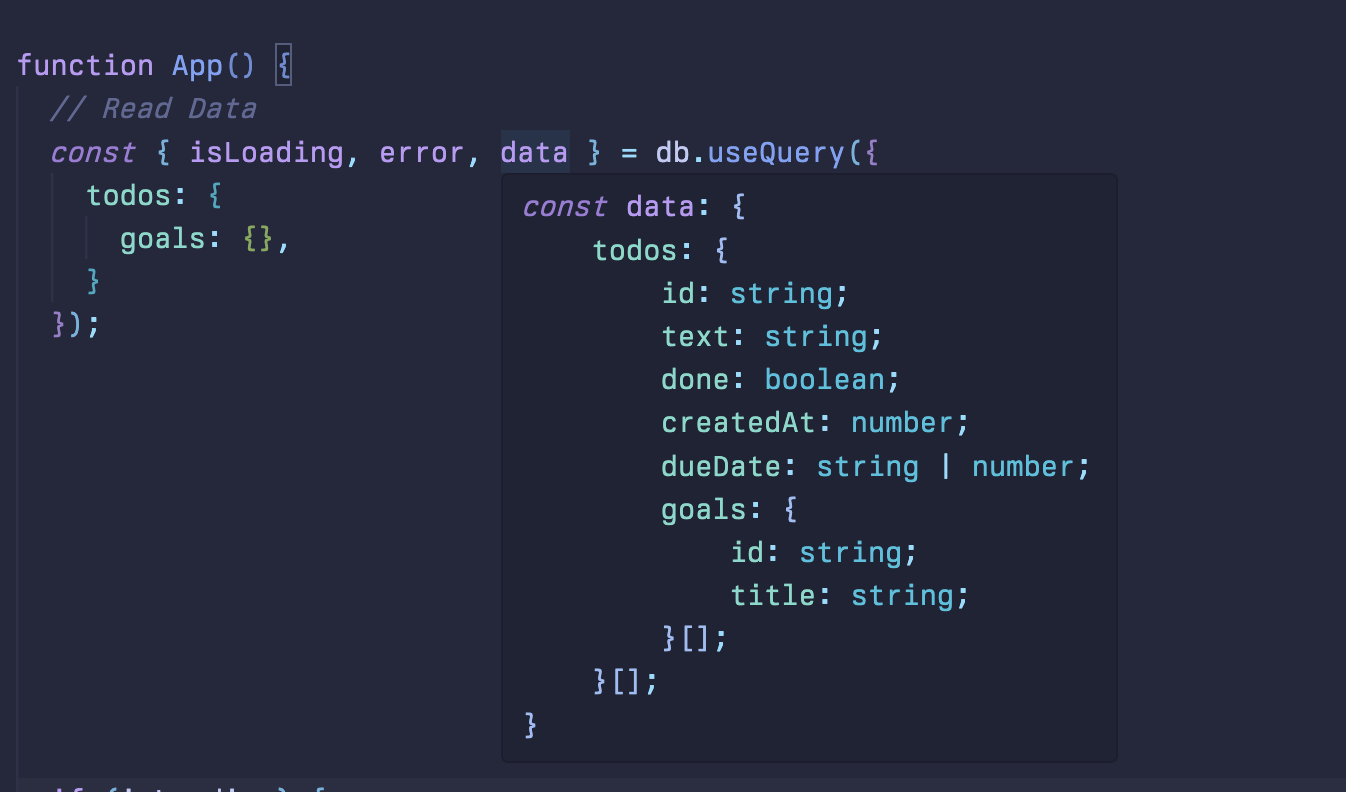 type TodoWithGoals = InstaQLEntity<AppSchema, 'todos', { goals: {} }>;